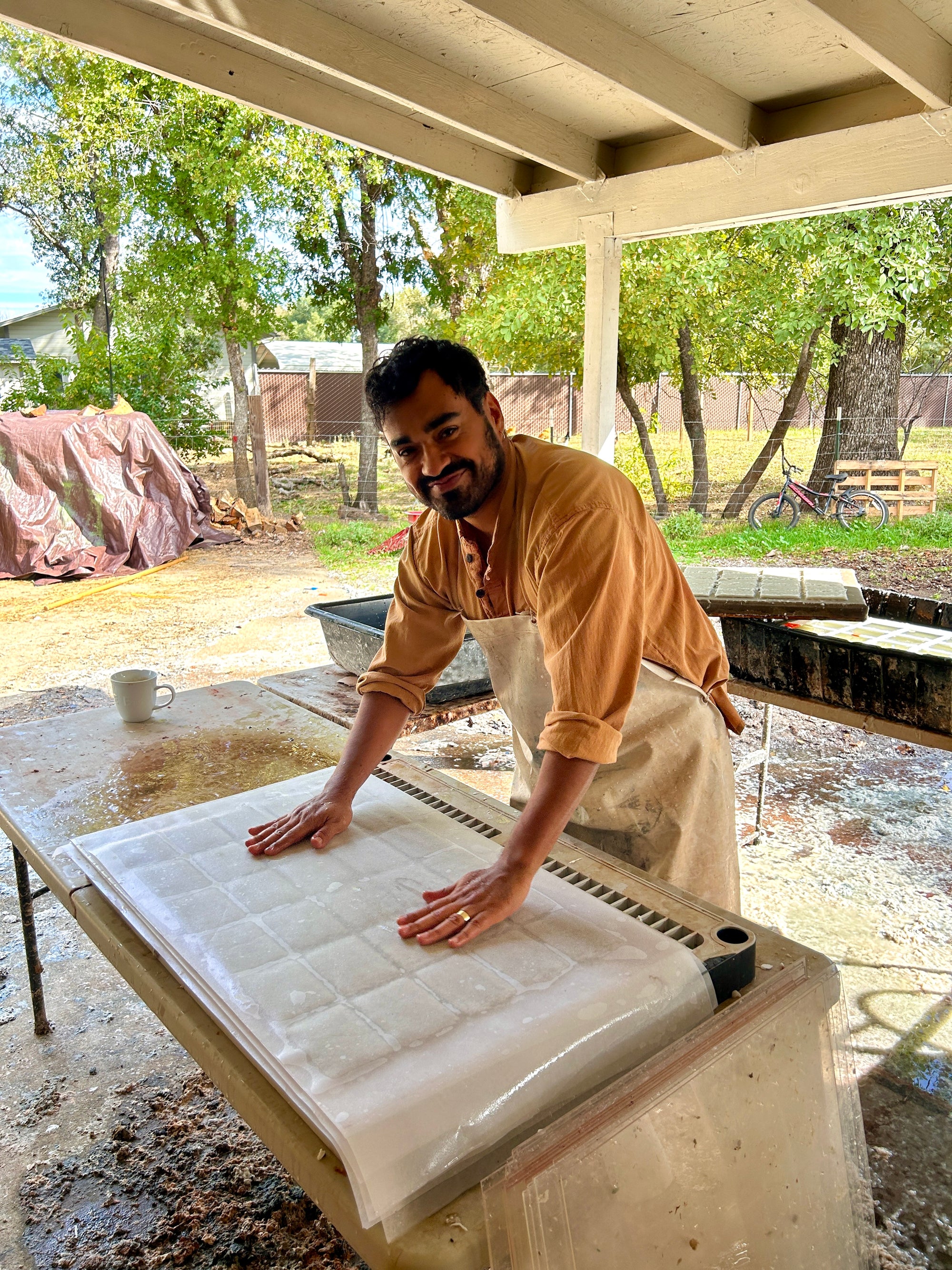 Hi my name is Tim Ramirez and I am the paper production manager here at Farmette. I love my job for many reasons, but ultimately my favorite thing to do is make paper. It’s messy, organized, therapuetic, and full of beauty. I am looking forward to teaching and learning from you.